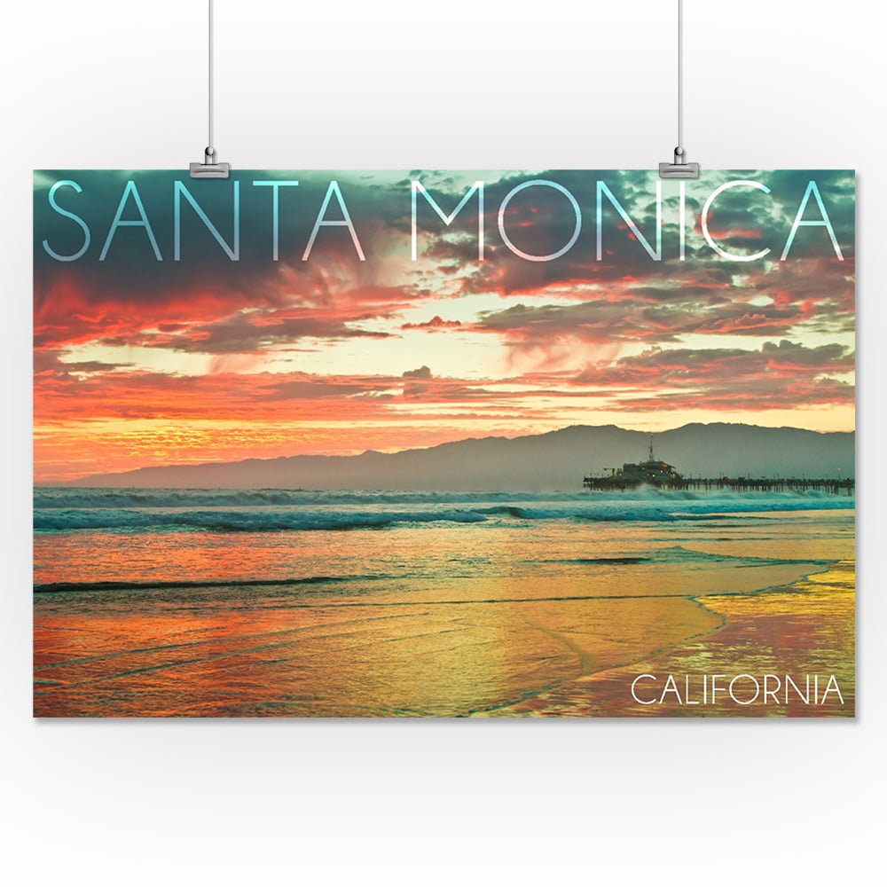 Santa Monica California Pier At Sunset Lantern Press Photography 9x12 Art Print Wall Decor Travel Poster Walmart Com